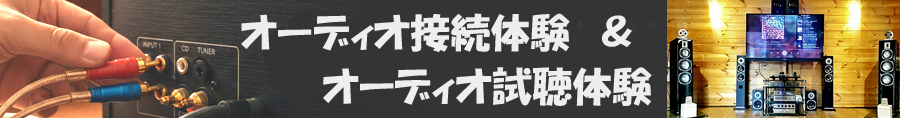オーディオ接続&オーディオ試聴体験はアンプやスピーカーを実際に接続し、本格的なオーディオシステムをご試聴頂く体験イベントです。 オーディオに詳しいスタッフがサポートします。時間は30分程度。無料です。